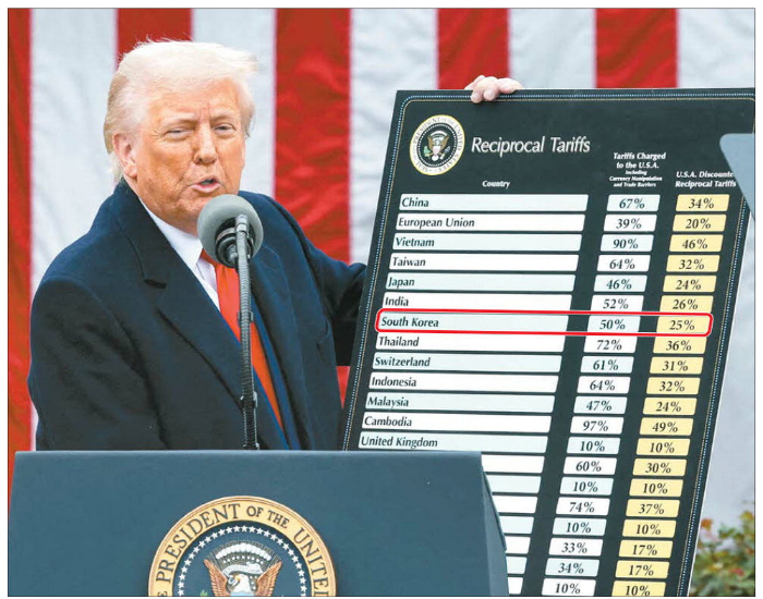 ✅ 미국 정부는 현지시간 4월 2일자로 중국 34%, 인도 26%, 한국 25% 등 국가별 상호관세를 발표했다.