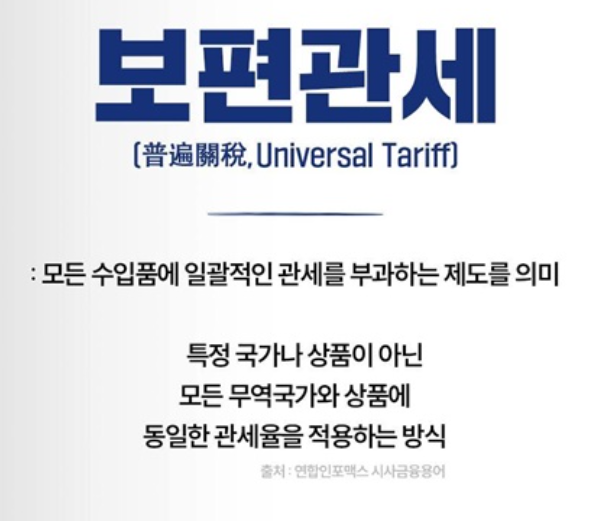 보편관세란 특정 국가나 제품에 상관없이, 모든 수입품에 동일한 관세율을 적용하는 제도입니다.