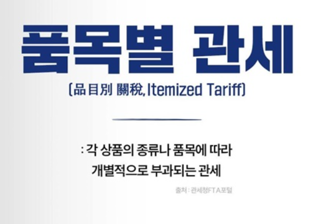 품목별 관세란 각 상품의 종류나 품목에 따라 세율을 다르게 적용하는 방식입니다.