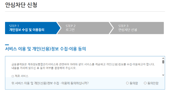 비대면 계좌개설 안심차단 서비스 신청방법(1) - 어카운트인포