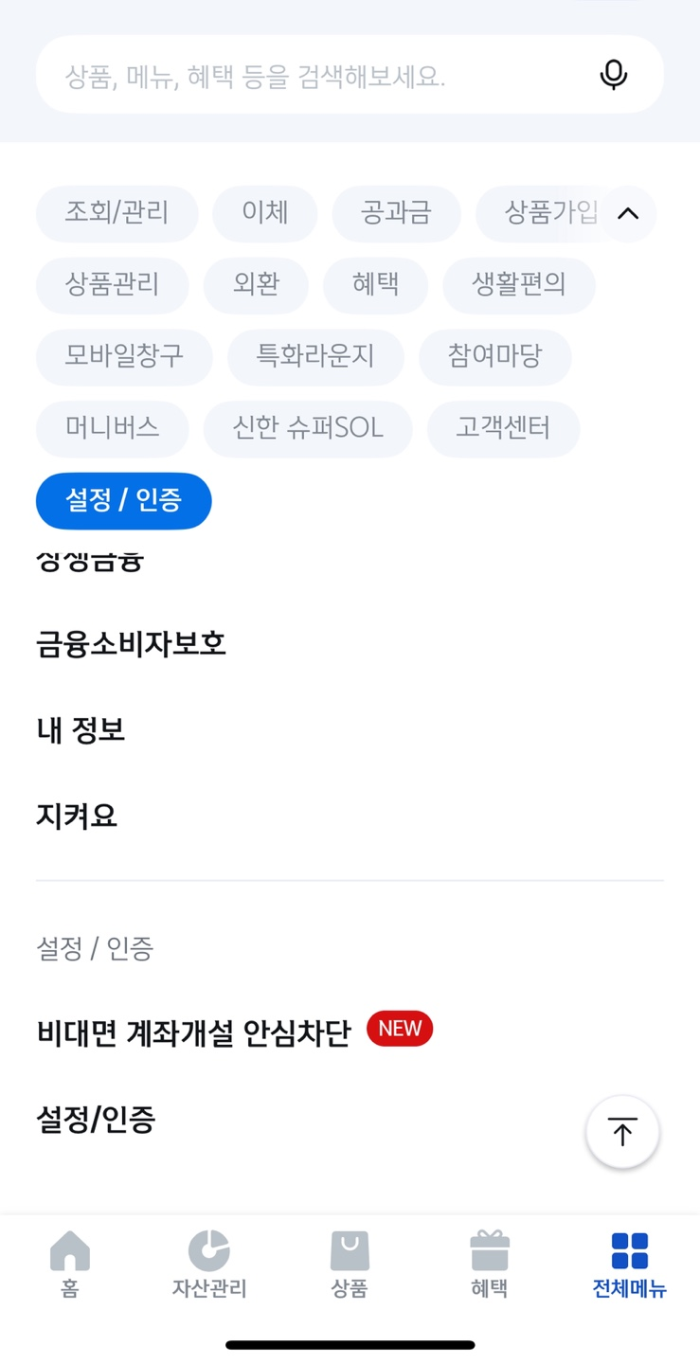 1️⃣ 전체 메뉴 → 설정 / 인증 → 비대면 계좌개설 안심차단