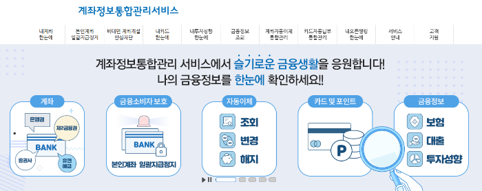 금융결제원에서 운영하는 어카운트인포에서는 여러 금융보호 서비스를 제공하며,