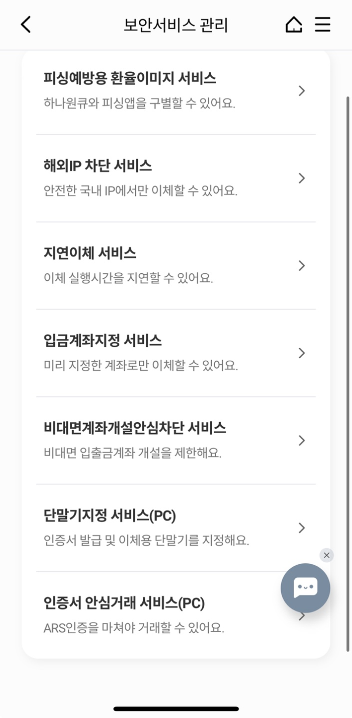 1️⃣ 전체 메뉴 → 인증/보안 → 보안서비스 → 금융거래 안심차단 서비스