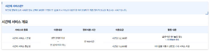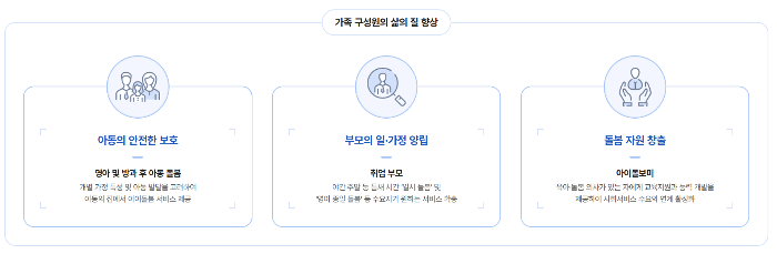 | 시간제 돌봄 | 등·하원 도우미, 놀이, 식사, 준비물 지도 등 | 만 3개월~12세 |