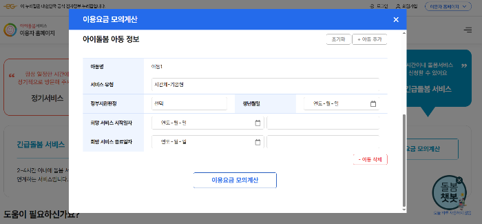 아이돌봄서비스 이용 요금 & 정부지원 기준