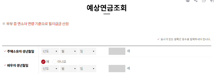 연령과 주택 시가를 입력하면 실시간으로 예상 수령액을 알려주기 때문에 가입 전 반드시 확인해보시길 권장합니다.
