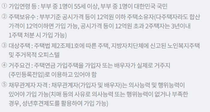 주택연금 가입조건(2025년 기준).