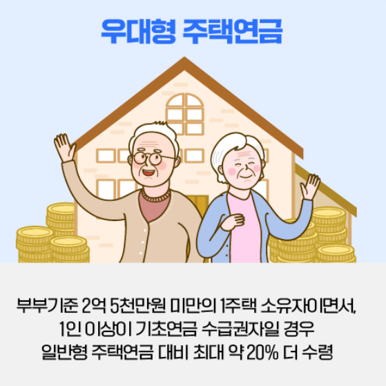 ✅ 우대형 주택연금: 기초연금 수급자 등 사회취약계층 대상 우대금리 적용