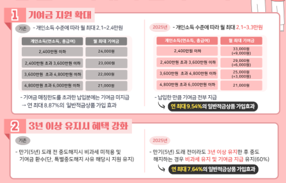 ✅ 정부 지원금 제공: 매월 일정 금액을 납입하면 정부가 매칭하여 지원금 지급