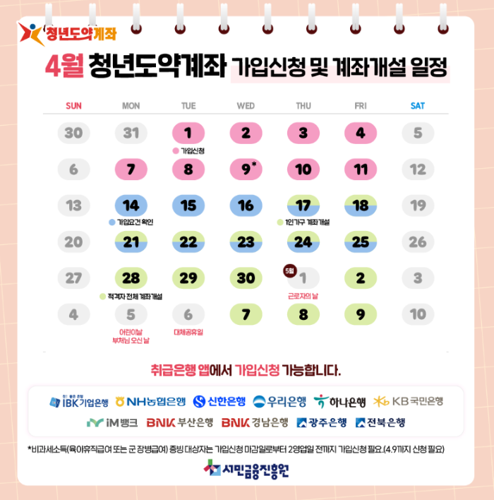 청년도약계좌는 매월초 정해진 기간 동안 신청을 받습니다.