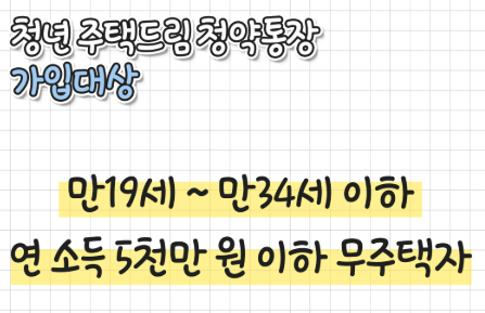 청년주택드림청약통장은 청년층을 대상으로 한 상품이기 때문에 가입할 수 있는 조건이 정해져 있습니다.