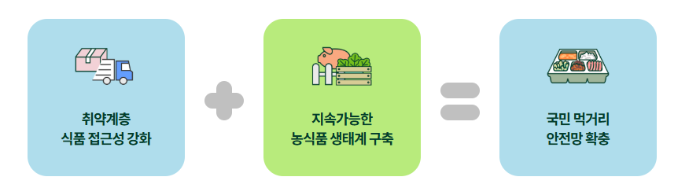 저소득층 가구가 신선한 식재료를 안정적으로 구입할 수 있도록 지원하고, 동시에 국내 농산물 소비 촉진과 지역 경제 활성화에도 기여합니다.