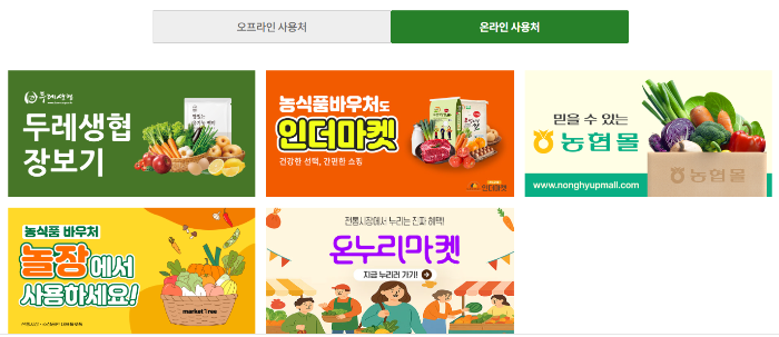 ✅ 농협몰, 인더마켓, 온누리마켓, 두레생협, 놀장