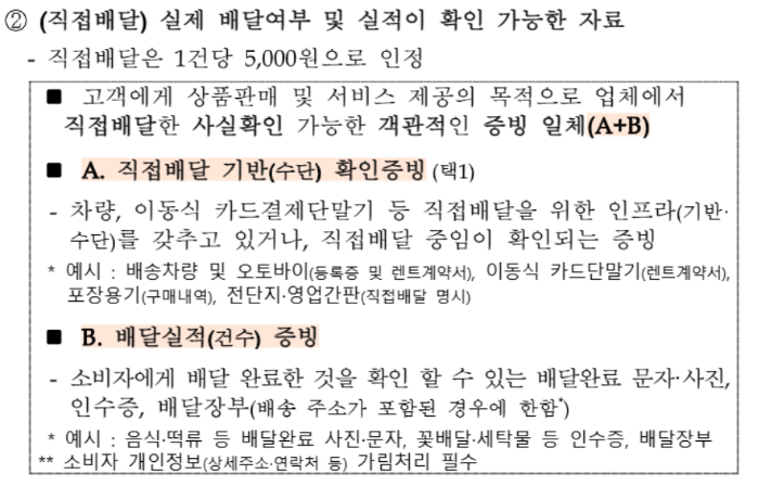 이 중에서도 특히 주목해야 할 점은 직접배달도 인정된다는 것!