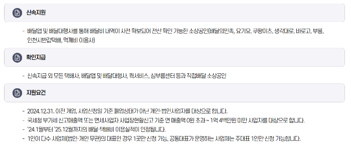 이번에는 직접 배달하거나, 택배사·배달 플랫폼을 통해 배달 실적이 있는 소상공인 모두가 지원 대상이 될 수 있습니다.