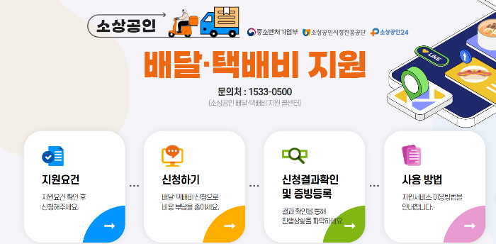 소상공인배달택배비지원.kr 또는 소상공인24에서 온라인으로 신청이 가능합니다