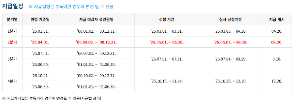 | 3분기 | 7월 1일 ~ 7월 31일 | 9월 10일부터 순차 지급 |