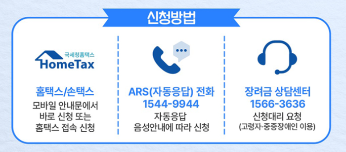 국세청은 보통 신청 대상자에게 문자를 보내주지만, 받지 못했다고 하더라도 스스로 신청 가능합니다.