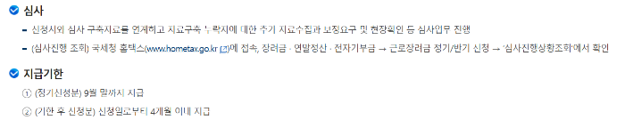 정기신청(5월) → 심사 → 2025년 9월 말 전후 지급 예정