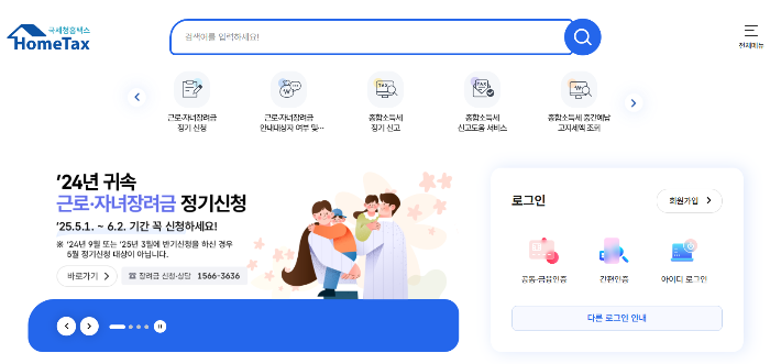 컴퓨터 사용이 익숙한 분이라면, 국세청 홈택스를 통한 신청도 가능합니다.