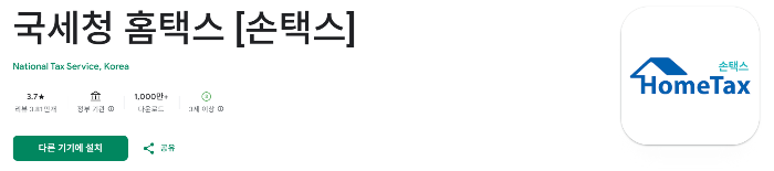 1️⃣ 구글 플레이스토어 또는 애플 앱스토어에서 ‘손택스’ 검색 후 설치