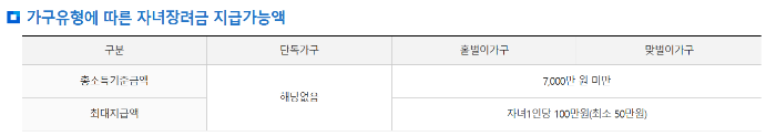 ✅ 홑벌이 가구: 7,000만 원 미만
